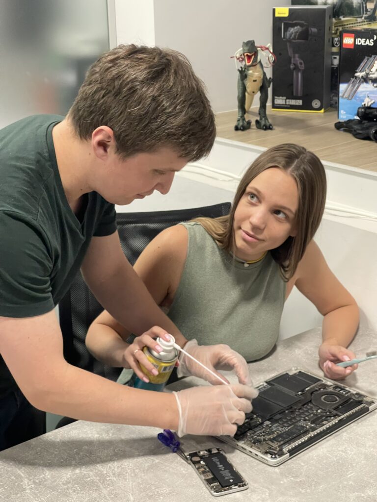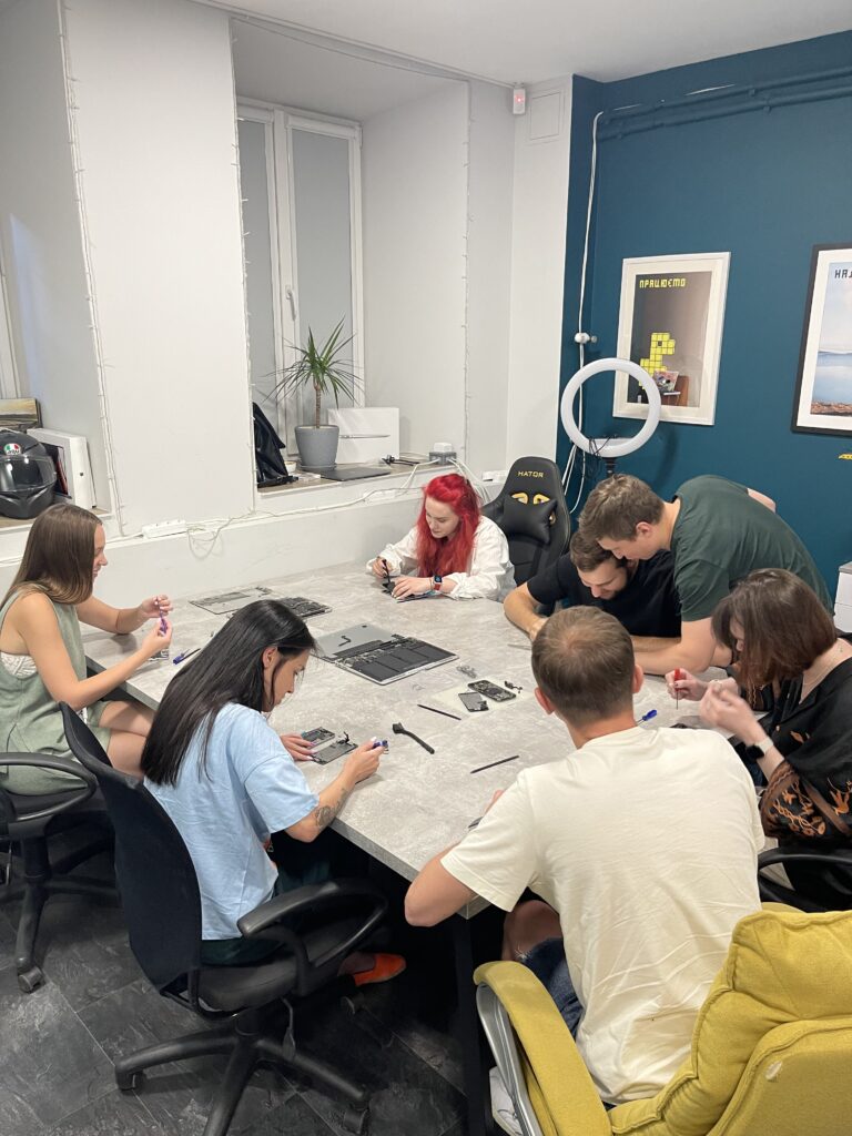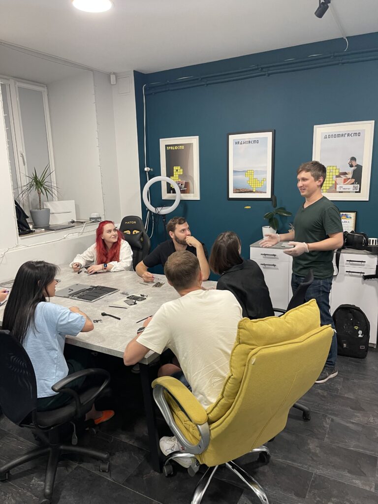 Сам евент був наповнений захоплюючими обговореннями та активностями. На центральному місці зустрічі були розібрані iPhone та MacBook. Десять найактивніших учасників зосереджено слідкували за процесом та вивчали внутрішні механізми цих пристроїв. Вони отримали базові знання про ремонт, дізнались про нюанси заміни компонентів, а також поглибили свої знання про догляд за технікою, який допомагає продовжити термін служби пристрою.